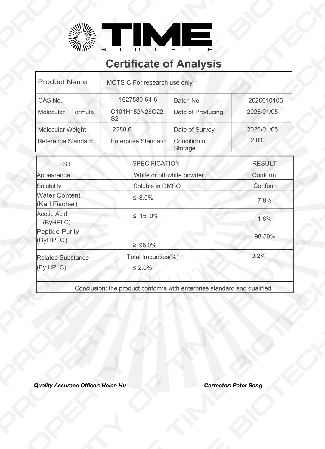 Certificate of Analysis